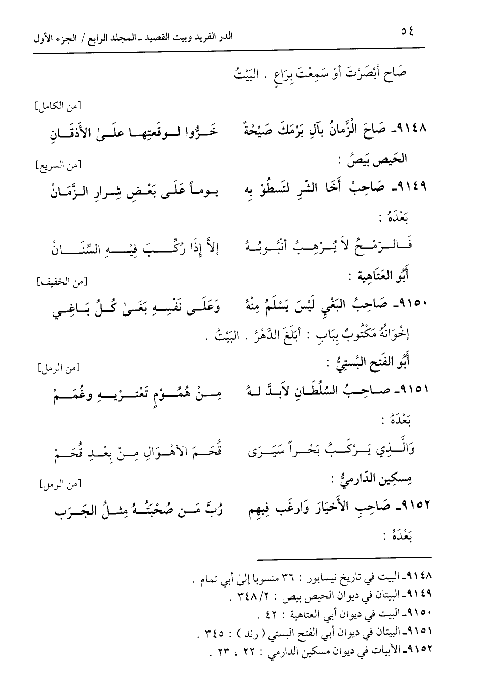9148 - البيت في تاريخ نيسابور: 36 منسوبا إلى أبي تمام.