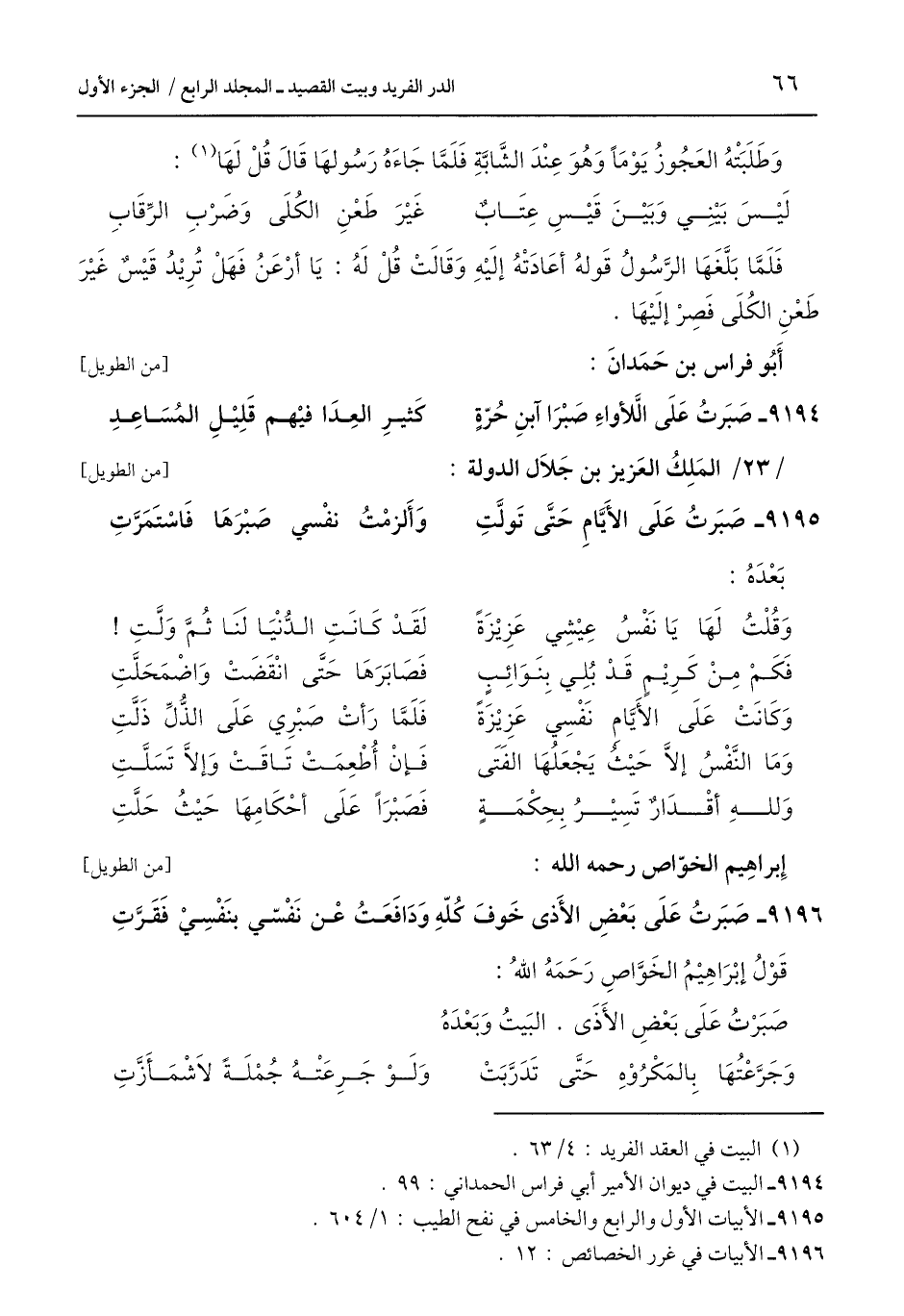 9194 - البيت في ديوان الأمير أبي فراس الحمداني: 99.