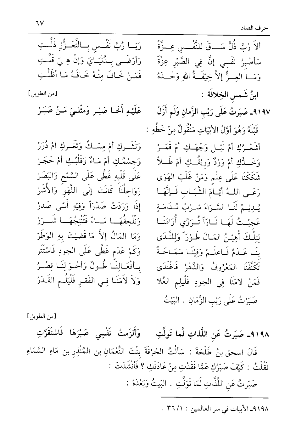 9197 - صَبَرتُ عَلَى رَيْبِ الزَّمانِ وَلَم أَزَلْ ... عَلَيْهِ أَخَا صَبْر وَمثْليَ مَنْ صَبَرْ