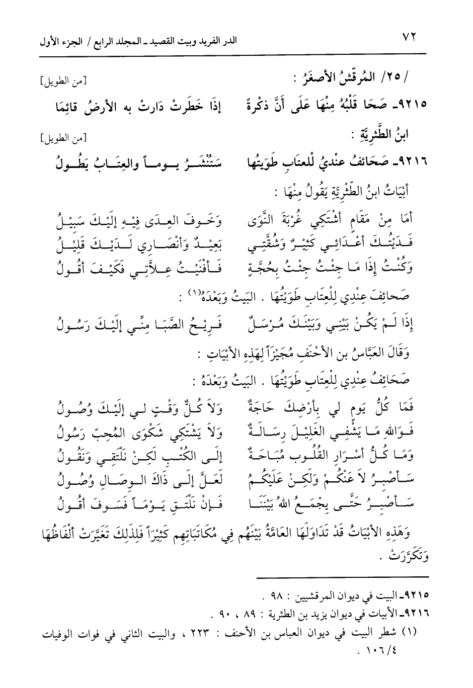صحائِفَ عِنْدِي لِلْعِتَابِ طَوَيْتُهَا. البَيْتُ وَبَعْدَهُ (¬1):