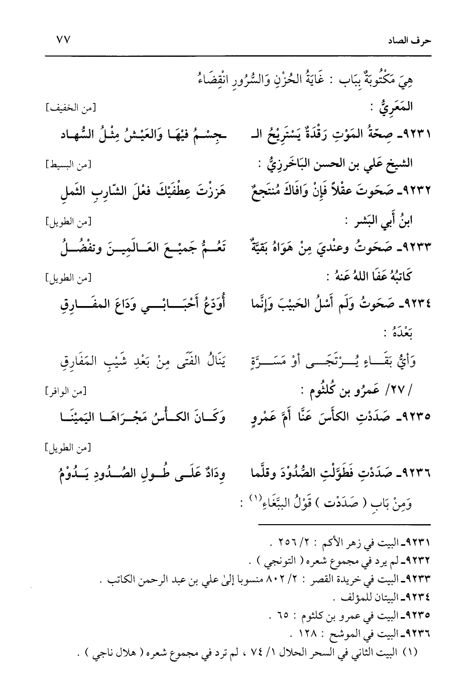 9233 - البيت في خريدة القصر: 2/ 802 منسوبا إلى علي بن عبد الرحمن الكاتب.