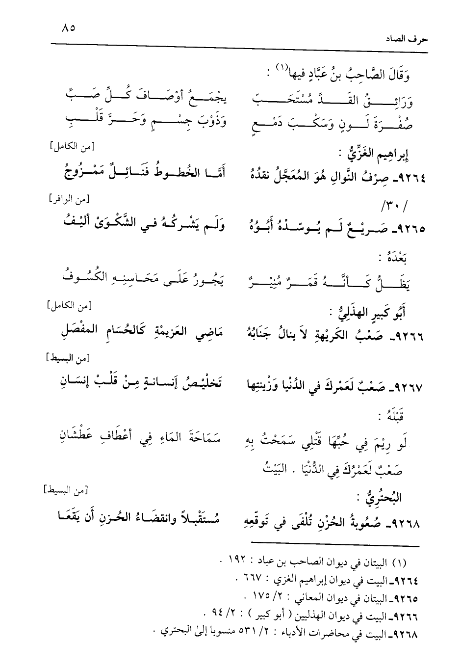 9268 - البيت في محاضرات الأدباء: 2/ 531 منسوبا إلى البحتري.