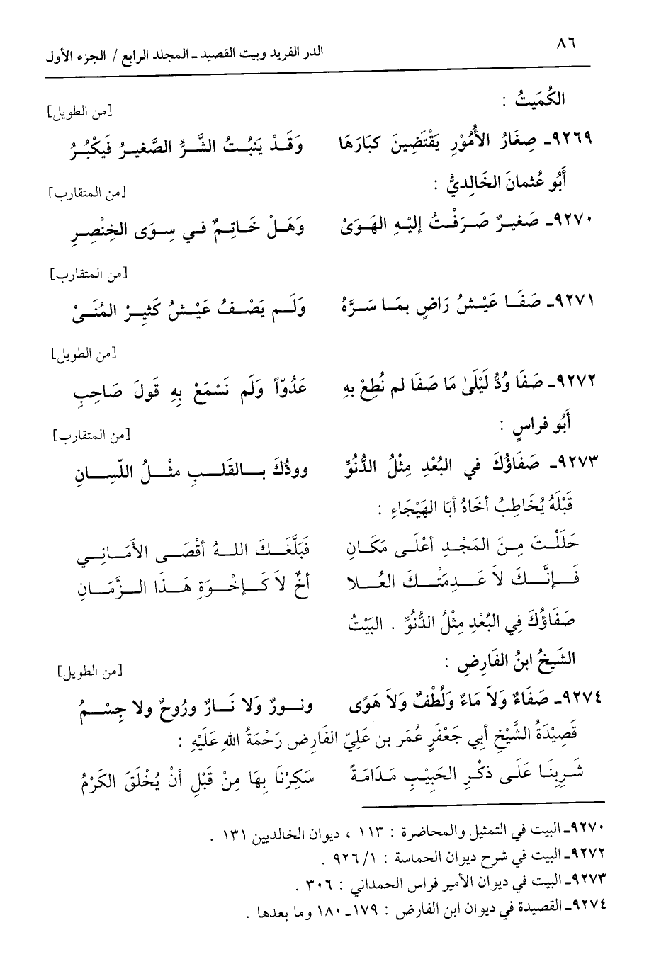 9270 - البيت في التمثيل والمحاضرة: 113، ديوان الخالديين 131.