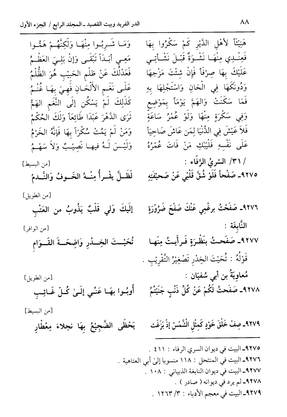 9275 - البيت في ديوان السري الرفاء: 411.