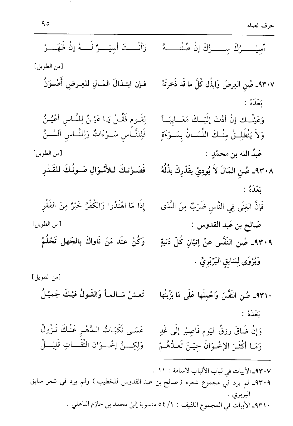 9308 - صُنِ المَالَ لَا يُودِيْ بقَدْرِكَ بذْلُهُ ... فَصَوُنكَ للأَمْوَالِ صَونُكَ للقَدْرِ