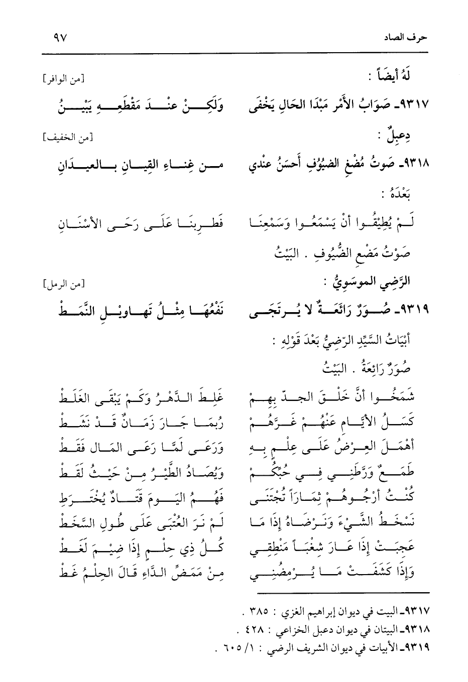 9319 - الأبيات في ديوان الشريف الرضي: 1/ 605.