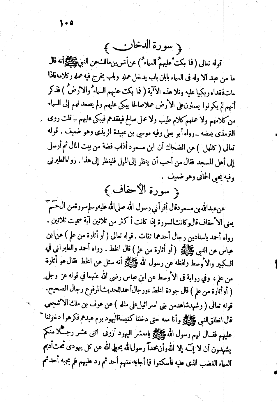 11334 - «عَنْ عَبْدِ اللَّهِ بْنِ مَسْعُودٍ قَالَ: أَقْرَأَنِي رَسُولُ اللَّهِ - صَلَّى اللَّهُ عَلَيْهِ وَسَلَّمَ - سُورَةً مِنَ الْ (حم)، يَعْنِي الْأَحْقَافَ، قَالَ: وَكَانَتِ السُّورَةُ إِذَا كَانَتْ أَكْثَرَ مِنْ ثَلَاثِينَ آيَةً سُمِّيَتْ ثَلَاثِينَ».