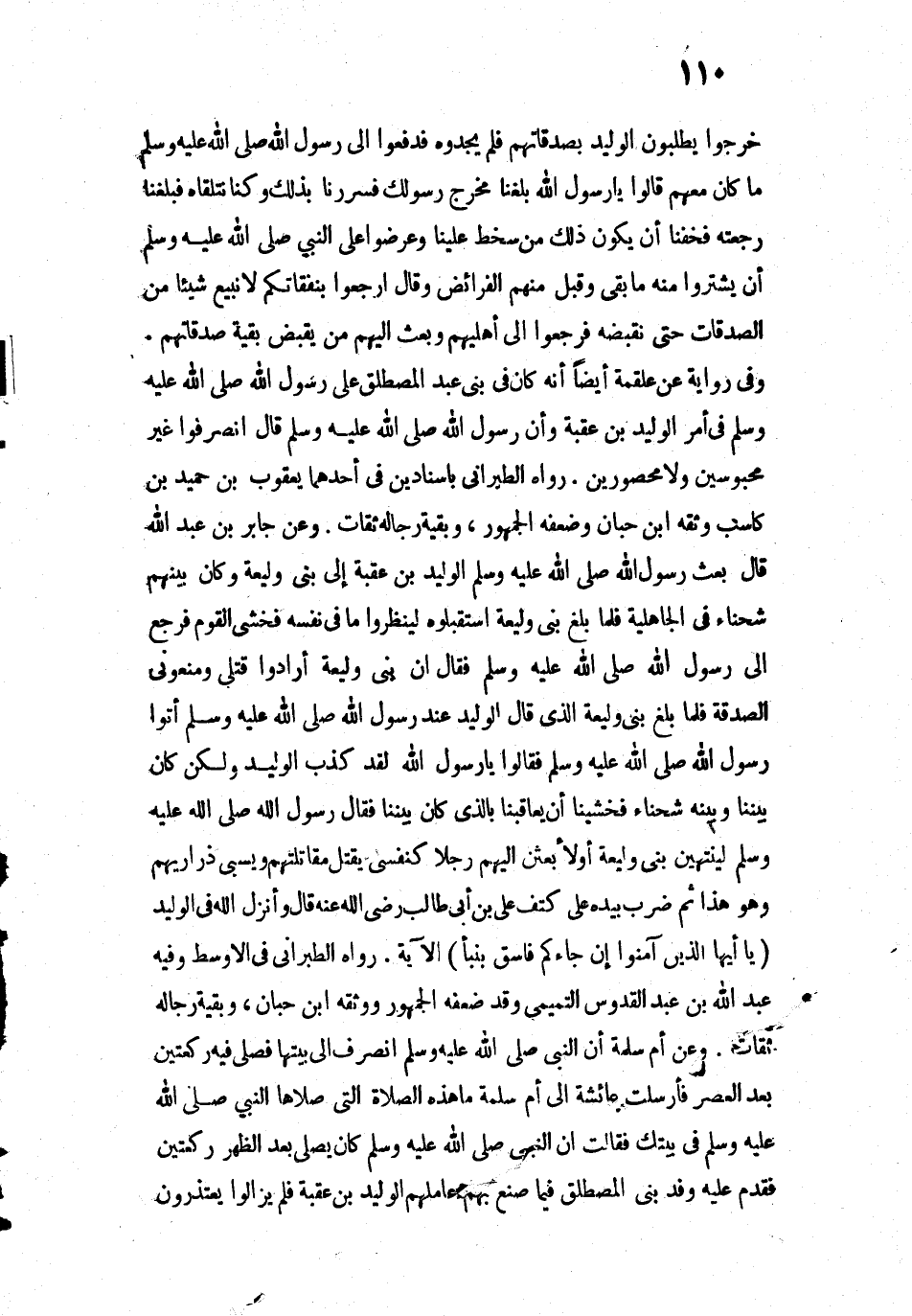 11355 - وَعَنْ جَابِرِ بْنِ عَبْدِ اللَّهِ قَالَ: «بَعَثَ رَسُولُ اللَّهِ - صَلَّى اللَّهُ عَلَيْهِ وَسَلَّمَ - الْوَلِيدَ بْنَ عُقْبَةَ إِلَى بَنِي وَلِيعَةَ، وَكَانَ بَيْنَهُمْ شَحْنَاءُ فِي الْجَاهِلِيَّةِ، فَلَمَّا بَلَغَ بَنِي وَلِيعَةَ اسْتَقْبَلُوهُ لِيَنْظُرُوا مَا فِي نَفْسِهِ، فَخَشِيَ الْقَوْمَ فَرَجَعَ إِلَى رَسُولِ اللَّهِ - صَلَّى اللَّهُ عَلَيْهِ وَسَلَّمَ - فَقَالَ: إِنَّ بَنِي وَلِيعَةَ أَرَادُوا قَتْلِي وَمَنَعُونِي الصَّدَقَةَ، فَلَمَّا بَلَغَ بَنِي وَلِيعَةَ الَّذِي قَالَ الْوَلِيدُ عِنْدَ رَسُولِ اللَّهِ - صَلَّى اللَّهُ عَلَيْهِ وَسَلَّمَ - أَتَوْا رَسُولَ اللَّهِ - صَلَّى اللَّهُ عَلَيْهِ وَسَلَّمَ - فَقَالُوا: يَا رَسُولَ اللَّهِ، لَقَدْ كَذَبَ الْوَلِيدُ، وَلَكِنْ كَانَ بَيْنَنَا وَبَيْنَهُ شَحْنَاءُ فَخَشِينَا أَنْ يُعَاقِبَنَا بِالَّذِي كَانَ بَيْنَنَا. فَقَالَ رَسُولُ اللَّهِ - صَلَّى اللَّهُ عَلَيْهِ وَسَلَّمَ -: " لَيَنْتَهِيَنَّ بَنُو وَلِيعَةَ أَوْ لَأَبْعَثَنَّ إِلَيْهِمْ رَجُلًا كَنَفْسِي، يَقْتُلُ مُقَاتِلَتَهُمْ وَيَسْبِي ذَرَارِيَّهُمْ وَهُوَ هَذَا "، ثُمَّ ضَرَبَ بِيَدِهِ عَلَى كَتِفِ عَلِيِّ بْنِ أَبِي طَالِبٍ - رَضِيَ اللَّهُ عَنْهُ - قَالَ: وَأَنْزَلَ اللَّهُ فِي الْوَلِيدِ {يَا أَيُّهَا الَّذِينَ آمَنُوا إِنْ جَاءَكُمْ فَاسِقٌ بِنَبَإٍ} [الحجرات: 6] الْآيَةَ».