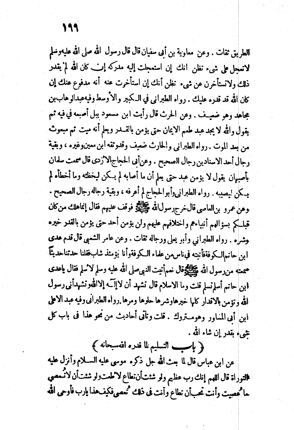 [بَابُ التَّسْلِيمِ لِمَا قَدَّرَهُ اللَّهُ سُبْحَانَهُ]