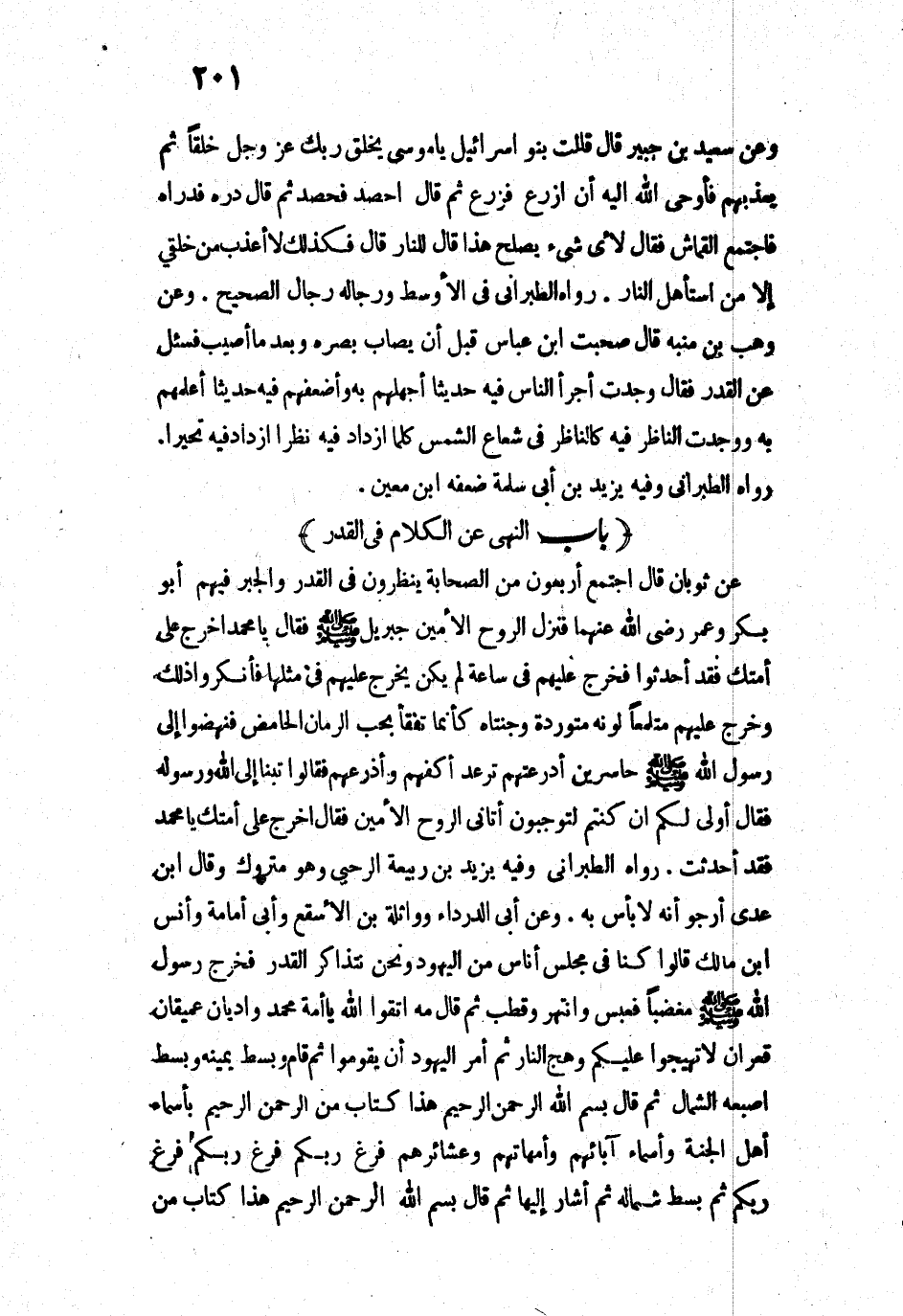 [بَابُ النَّهْيِ عَنِ الْكَلَامِ فِي الْقَدَرِ]