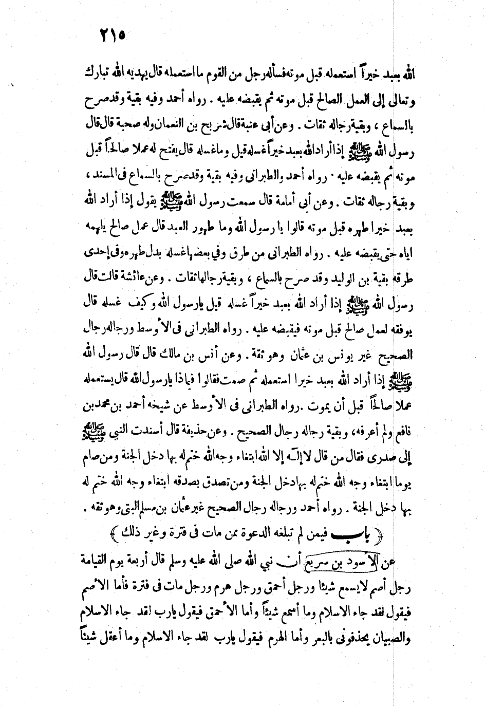 [بَابٌ فِيمَنْ لَمْ تَبْلُغْهُ الدَّعْوَةُ مِمَّنْ مَاتَ فِي فَتْرَةٍ وَغَيْرِ ذَلِكَ]