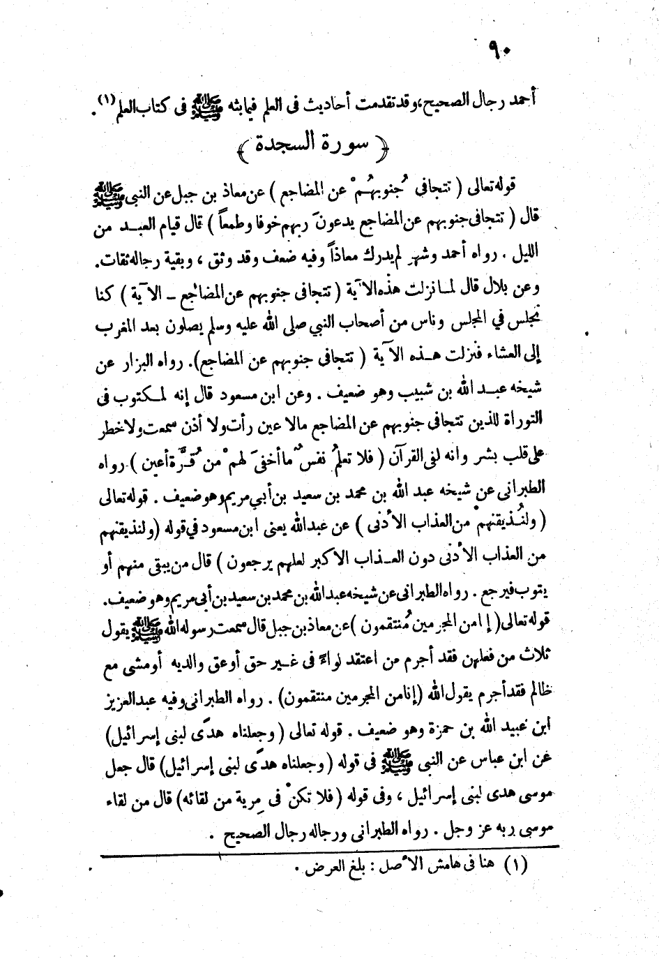 11265 - عَنْ مُعَاذِ بْنِ جَبَلٍ عَنِ النَّبِيِّ - صَلَّى اللَّهُ عَلَيْهِ وَسَلَّمَ - قَالَ: «{تَتَجَافَى جُنُوبُهُمْ عَنِ الْمَضَاجِعِ يَدْعُونَ رَبَّهُمْ خَوْفًا وَطَمَعًا} [السجدة: 16]. قَالَ: " قِيَامُ الْعَبْدِ مِنَ اللَّيْلِ».