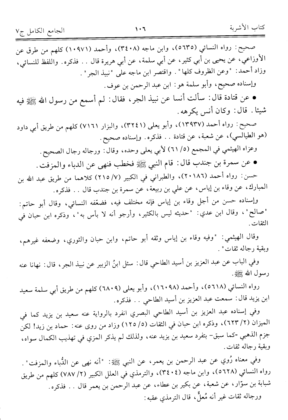 كتاب الجامع الكامل في الحديث الصحيح الشامل المرتب على أبواب الفقه (اسم الجزء: 7)