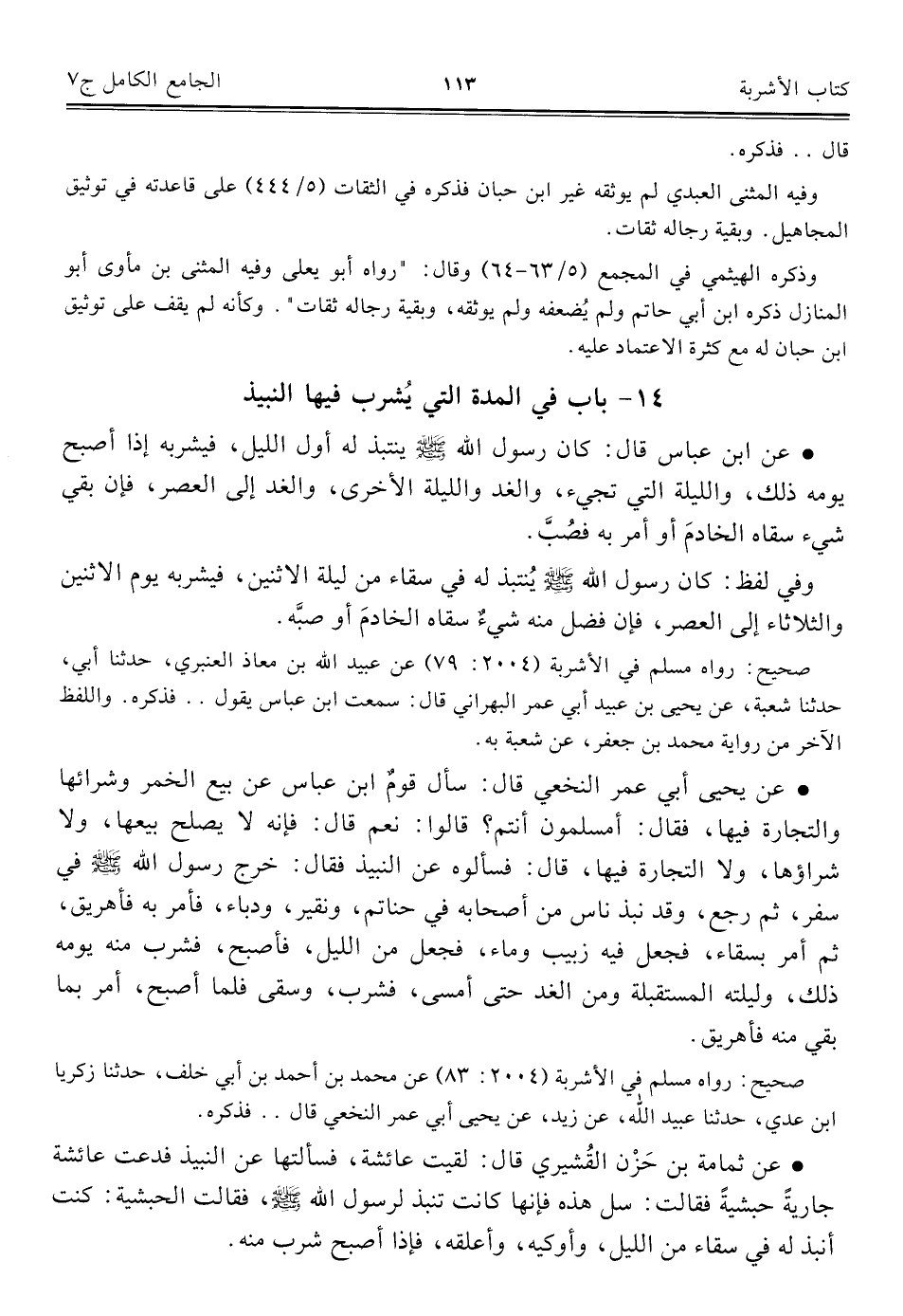 كتاب الجامع الكامل في الحديث الصحيح الشامل المرتب على أبواب الفقه (اسم الجزء: 7)