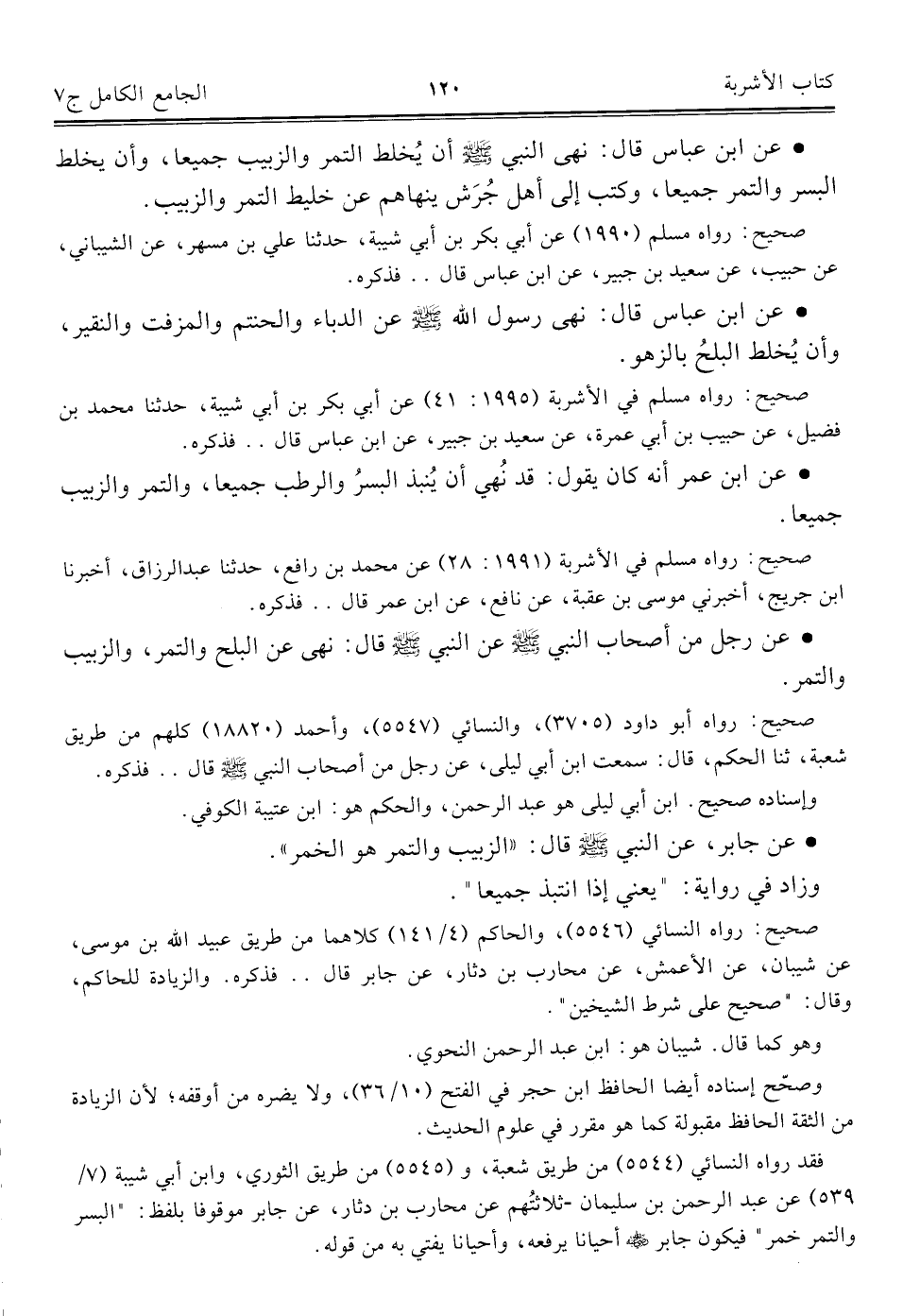 كتاب الجامع الكامل في الحديث الصحيح الشامل المرتب على أبواب الفقه (اسم الجزء: 7)