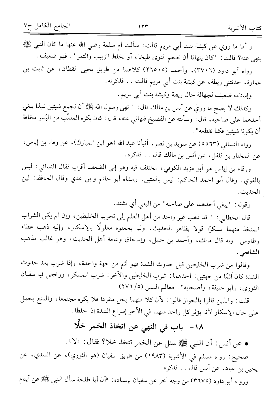 كتاب الجامع الكامل في الحديث الصحيح الشامل المرتب على أبواب الفقه (اسم الجزء: 7)