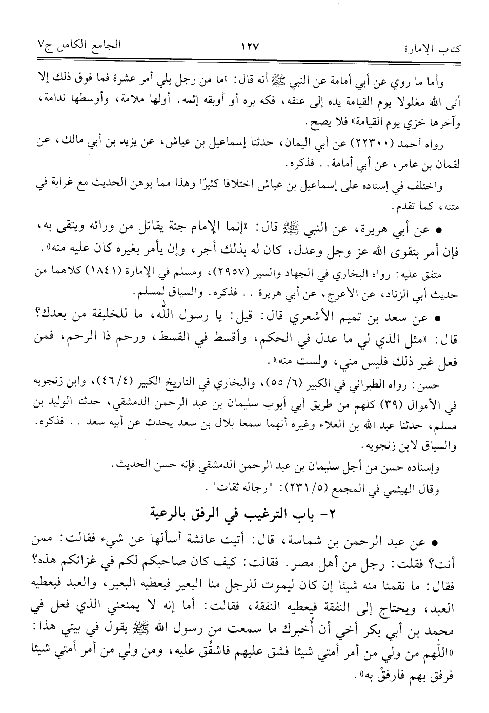 كتاب الجامع الكامل في الحديث الصحيح الشامل المرتب على أبواب الفقه (اسم الجزء: 7)
