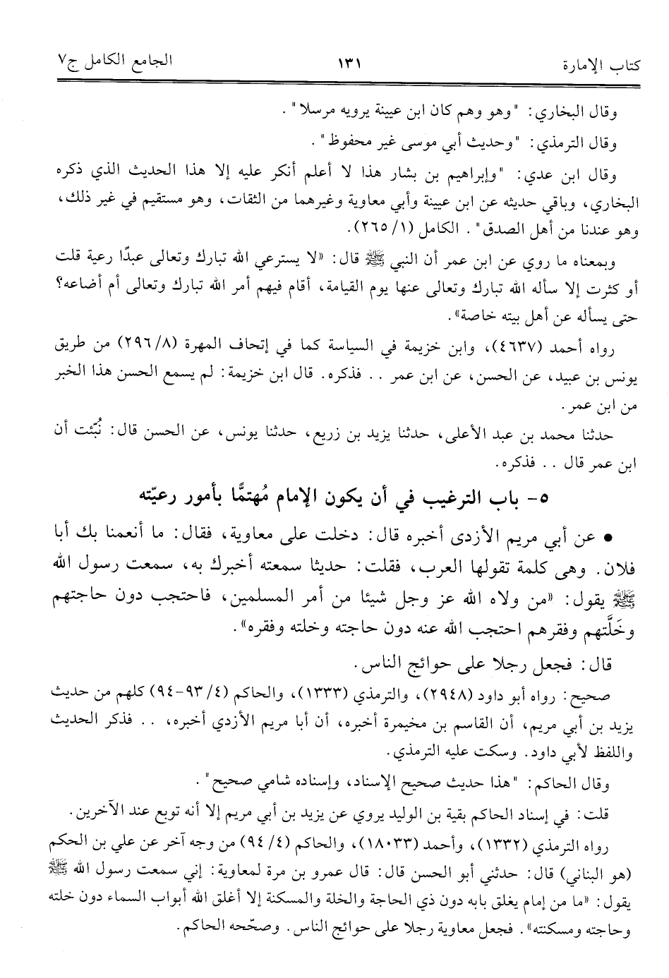 ٥ - باب الترغيب في أن يكون الإمام مُهتمًّا بأمور رعيّته