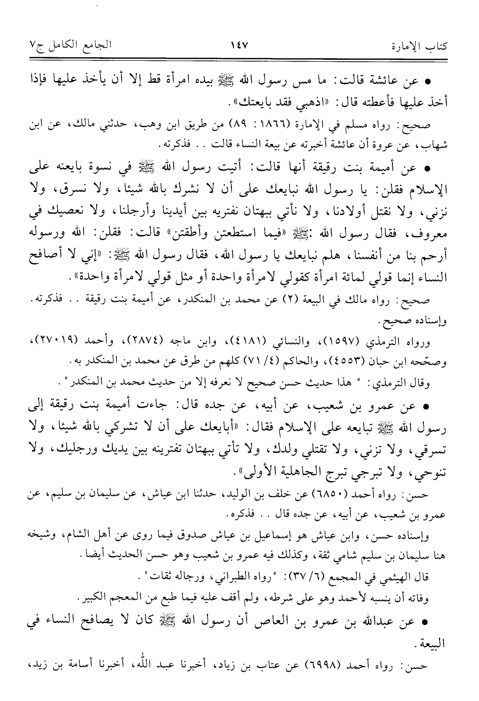 كتاب الجامع الكامل في الحديث الصحيح الشامل المرتب على أبواب الفقه (اسم الجزء: 7)