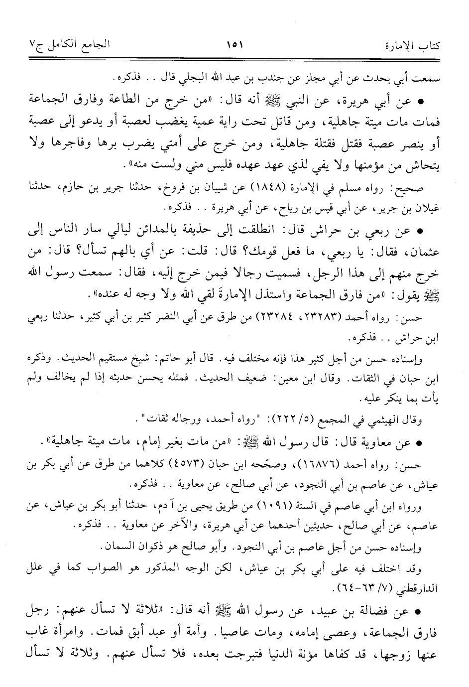 كتاب الجامع الكامل في الحديث الصحيح الشامل المرتب على أبواب الفقه (اسم الجزء: 7)