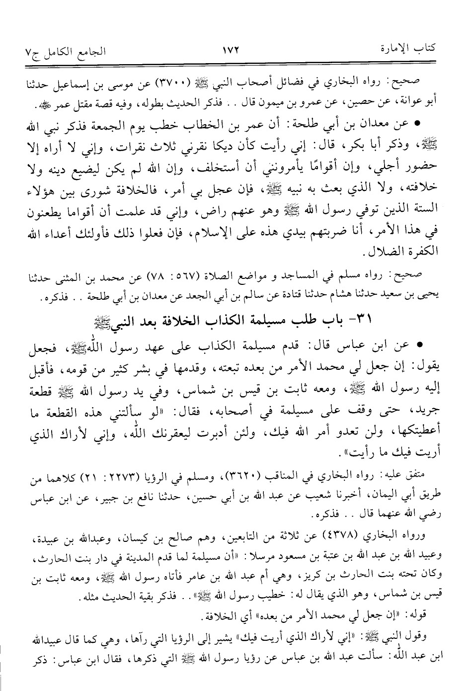 كتاب الجامع الكامل في الحديث الصحيح الشامل المرتب على أبواب الفقه (اسم الجزء: 7)