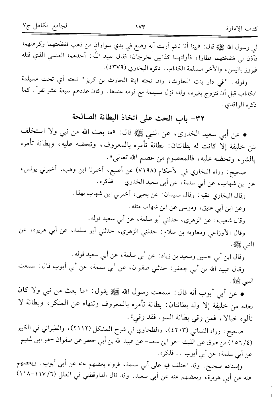 كتاب الجامع الكامل في الحديث الصحيح الشامل المرتب على أبواب الفقه (اسم الجزء: 7)
