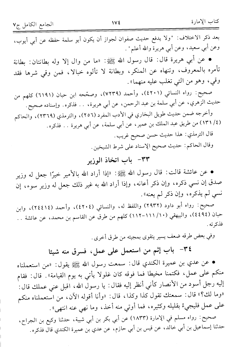 كتاب الجامع الكامل في الحديث الصحيح الشامل المرتب على أبواب الفقه (اسم الجزء: 7)