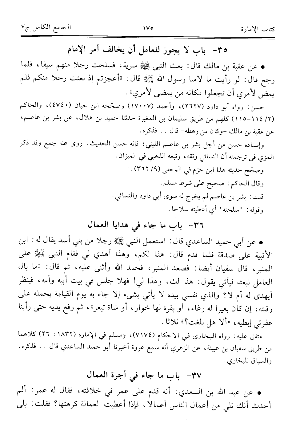 كتاب الجامع الكامل في الحديث الصحيح الشامل المرتب على أبواب الفقه (اسم الجزء: 7)