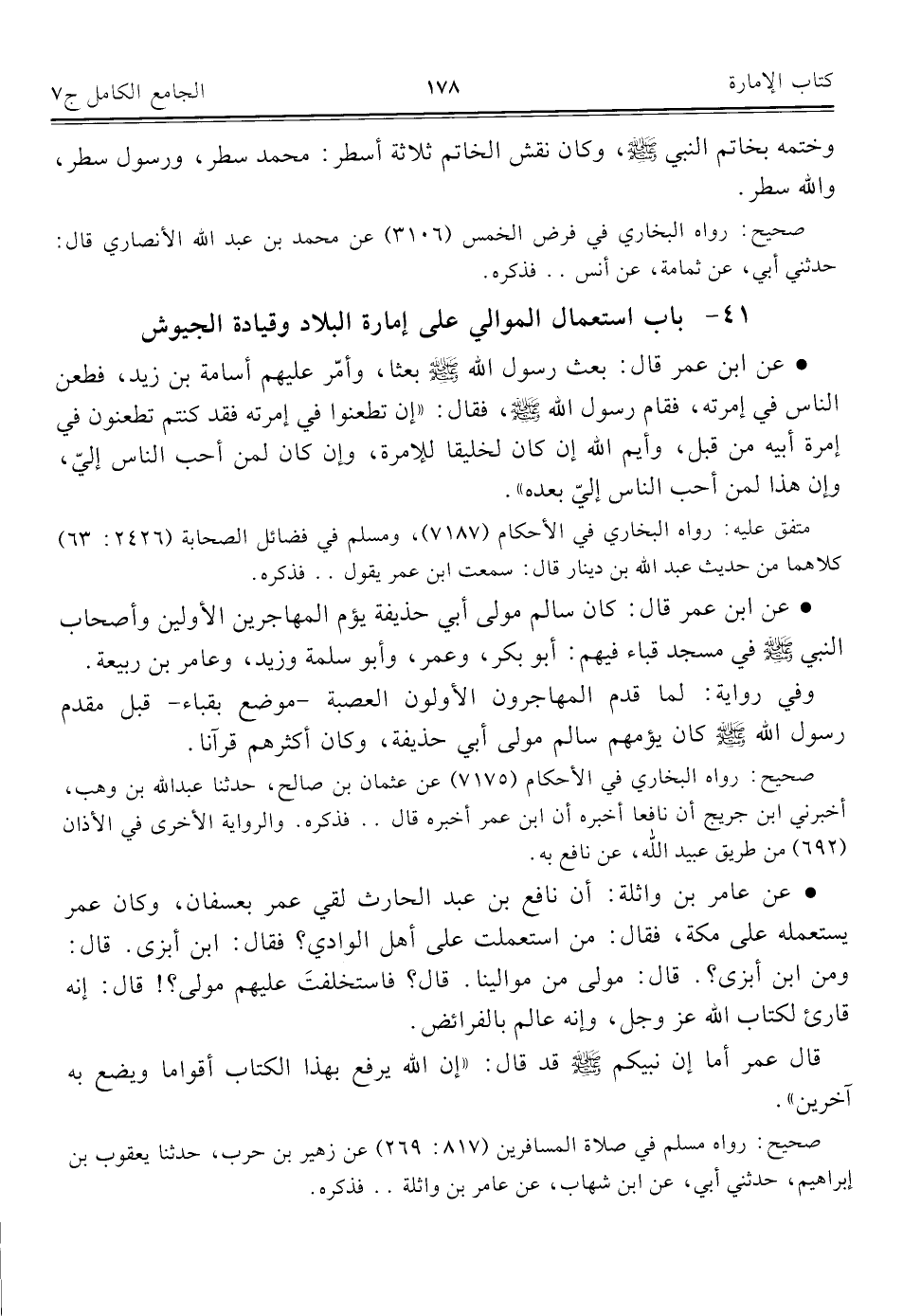 كتاب الجامع الكامل في الحديث الصحيح الشامل المرتب على أبواب الفقه (اسم الجزء: 7)