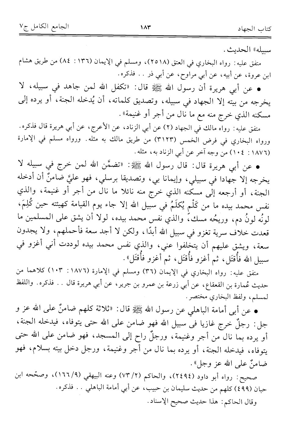 كتاب الجامع الكامل في الحديث الصحيح الشامل المرتب على أبواب الفقه (اسم الجزء: 7)