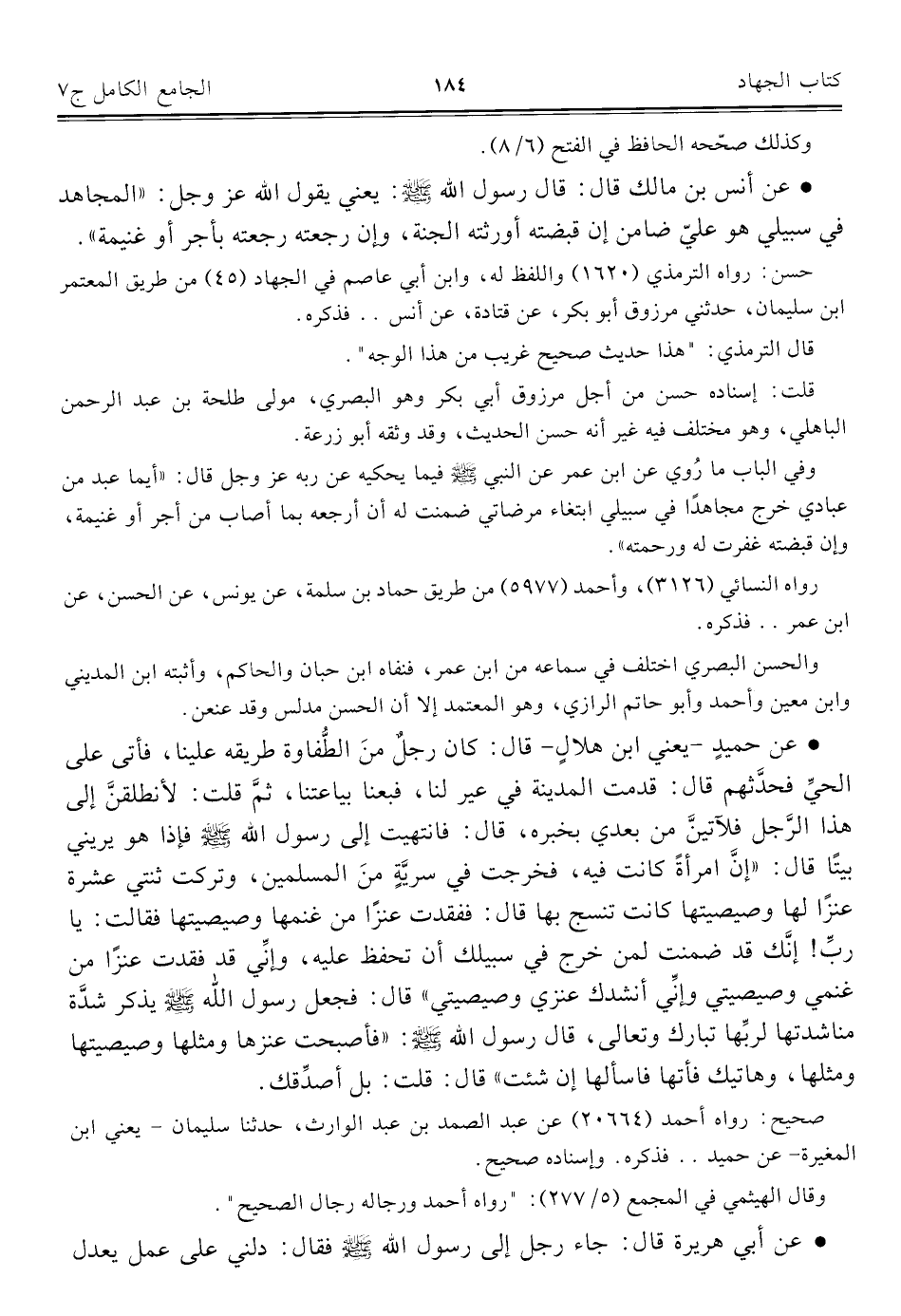 كتاب الجامع الكامل في الحديث الصحيح الشامل المرتب على أبواب الفقه (اسم الجزء: 7)