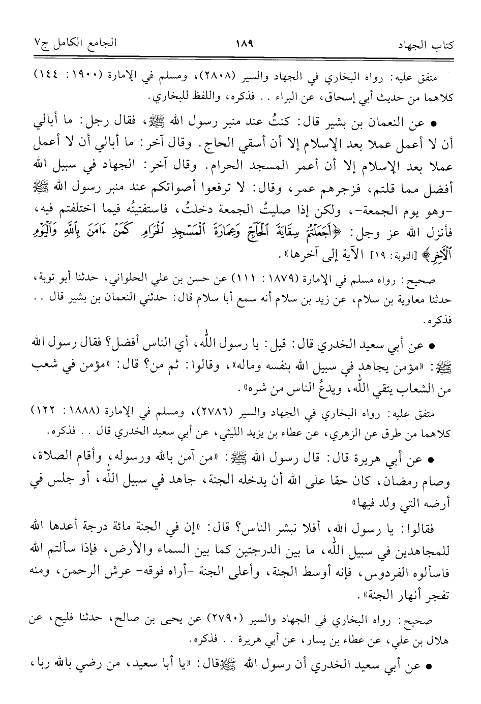 كتاب الجامع الكامل في الحديث الصحيح الشامل المرتب على أبواب الفقه (اسم الجزء: 7)