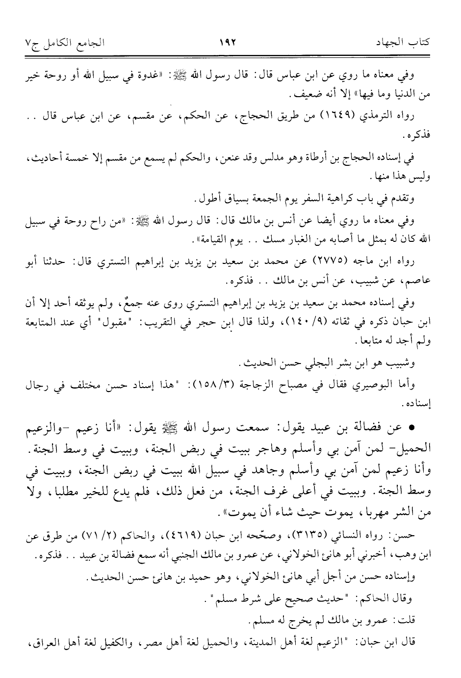 كتاب الجامع الكامل في الحديث الصحيح الشامل المرتب على أبواب الفقه (اسم الجزء: 7)