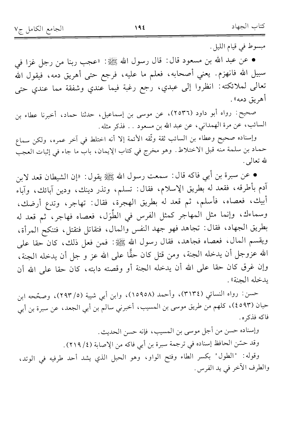 كتاب الجامع الكامل في الحديث الصحيح الشامل المرتب على أبواب الفقه (اسم الجزء: 7)