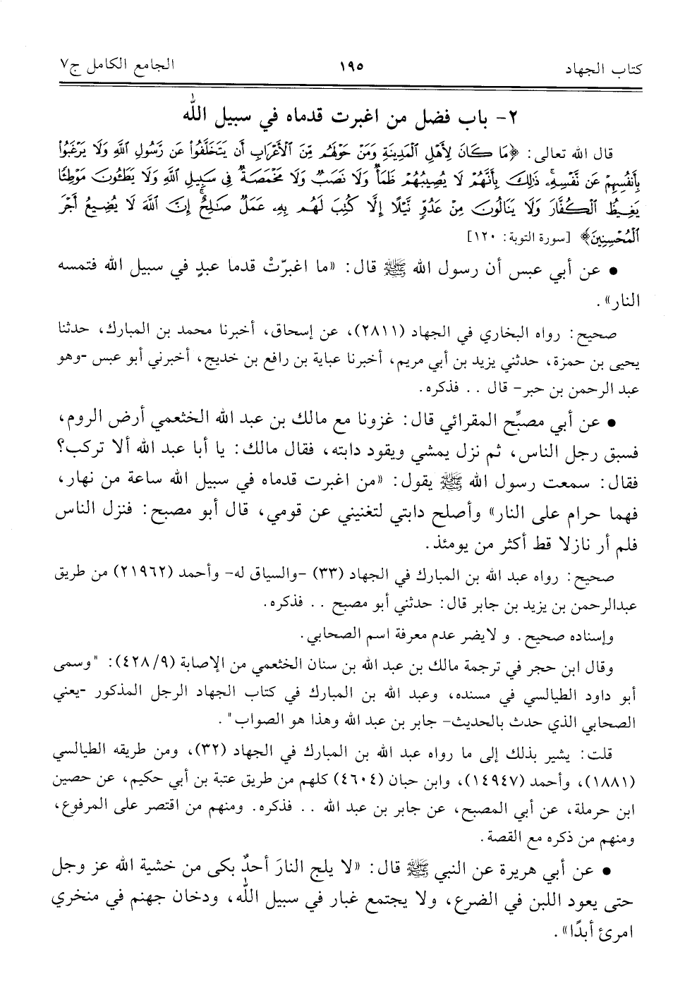 ٢ - باب فضل من اغبرت قدماه في سبيل الله
