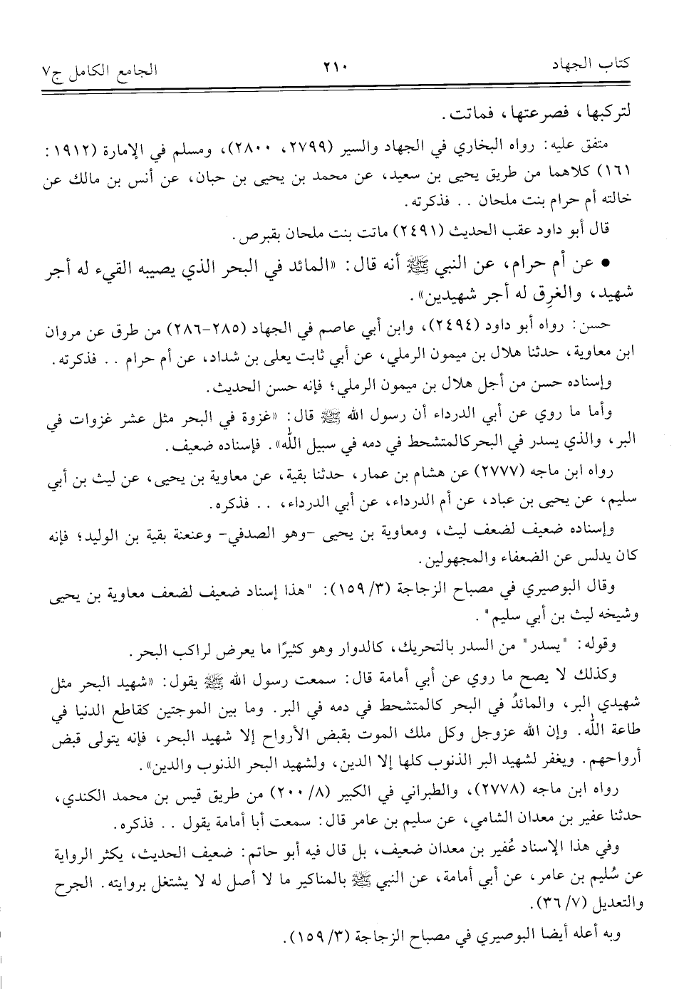 كتاب الجامع الكامل في الحديث الصحيح الشامل المرتب على أبواب الفقه (اسم الجزء: 7)