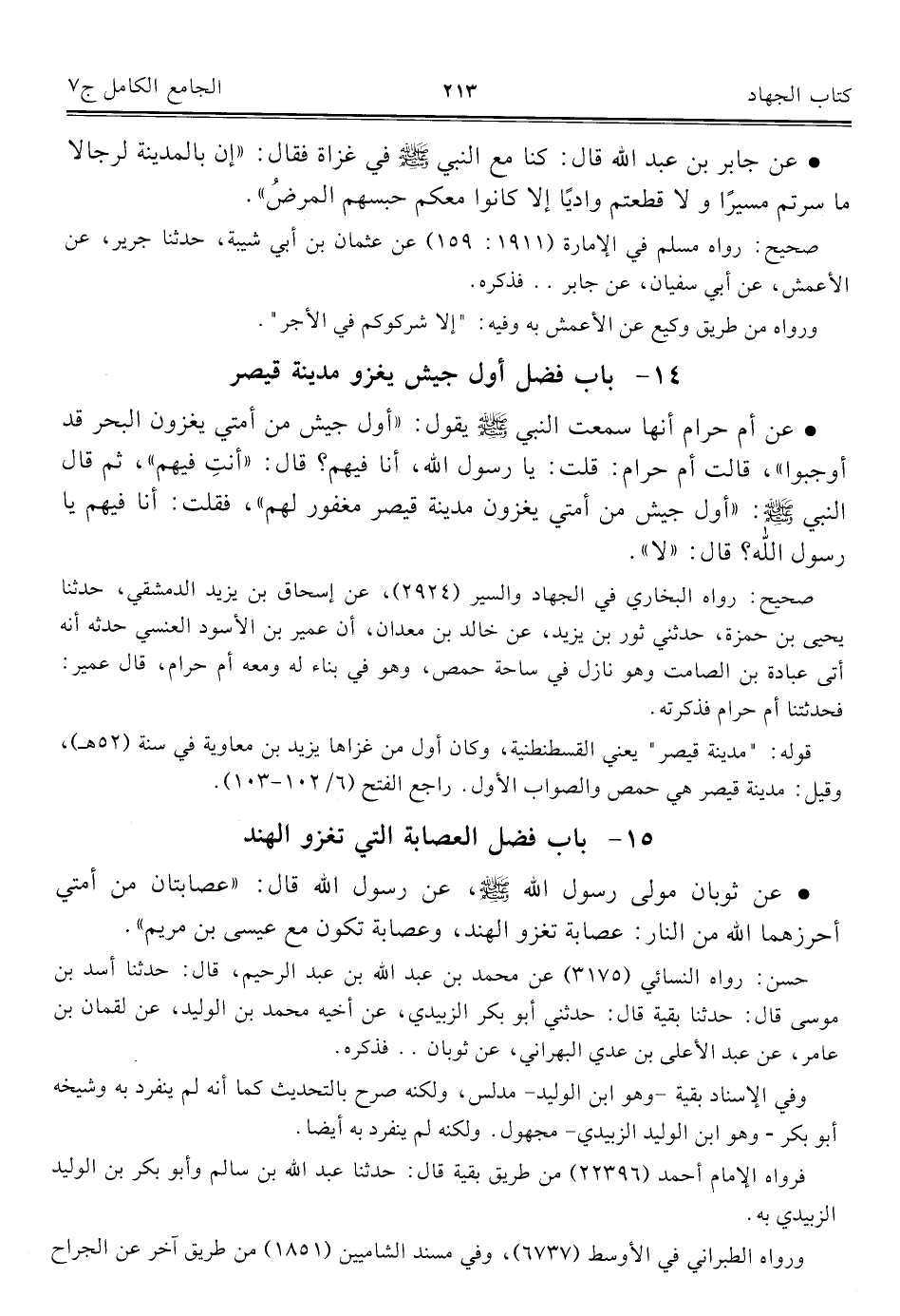 كتاب الجامع الكامل في الحديث الصحيح الشامل المرتب على أبواب الفقه (اسم الجزء: 7)