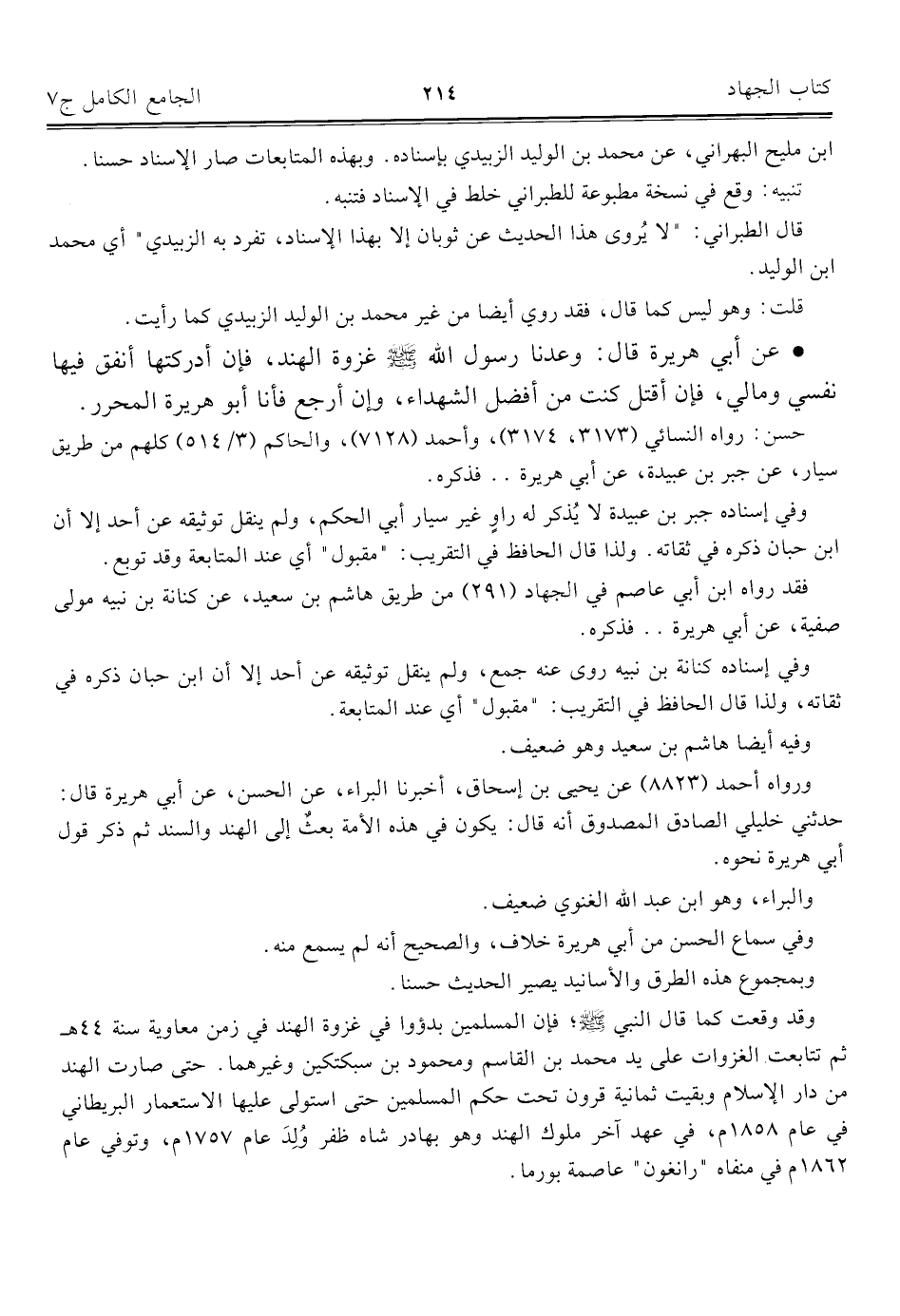 ورواه أحمد (٨٨٢٣) عن يحيى بن إسحاق، أخبرنا البراء، عن الحسن، عن أبي هريرة قال: حدثني خليلي الصادق المصدوق أنه قال: يكون في هذه الأمة بعثٌ إلى الهند والسند ثم ذكر قول أبي هريرة نحوه.