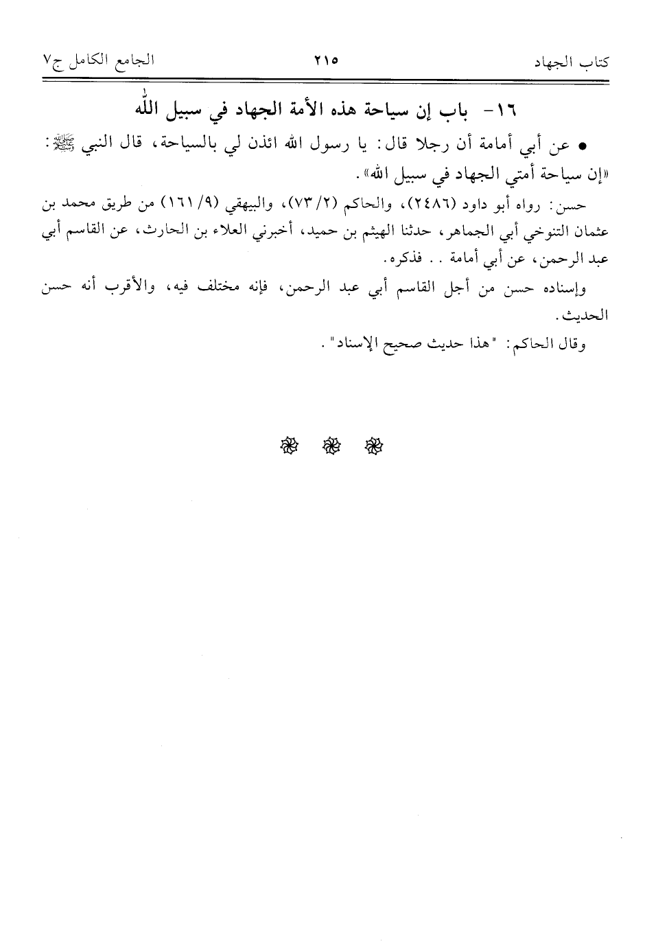كتاب الجامع الكامل في الحديث الصحيح الشامل المرتب على أبواب الفقه (اسم الجزء: 7)
