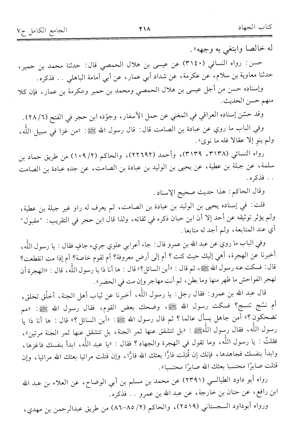 كتاب الجامع الكامل في الحديث الصحيح الشامل المرتب على أبواب الفقه (اسم الجزء: 7)