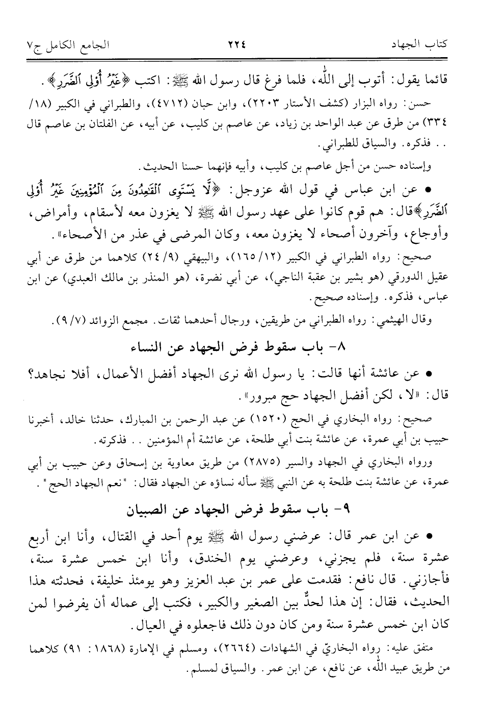 كتاب الجامع الكامل في الحديث الصحيح الشامل المرتب على أبواب الفقه (اسم الجزء: 7)