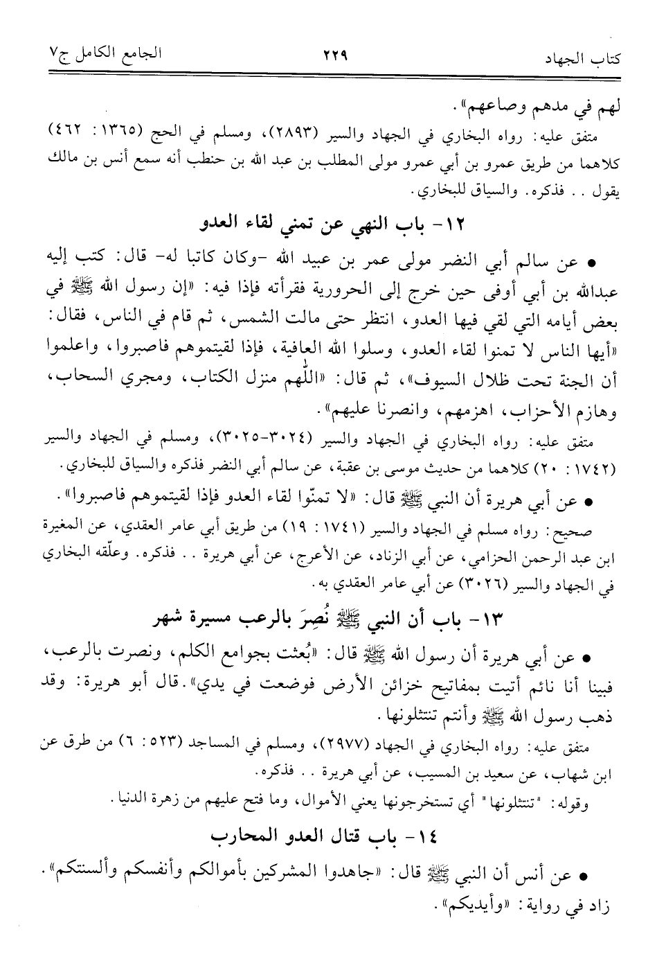 كتاب الجامع الكامل في الحديث الصحيح الشامل المرتب على أبواب الفقه (اسم الجزء: 7)