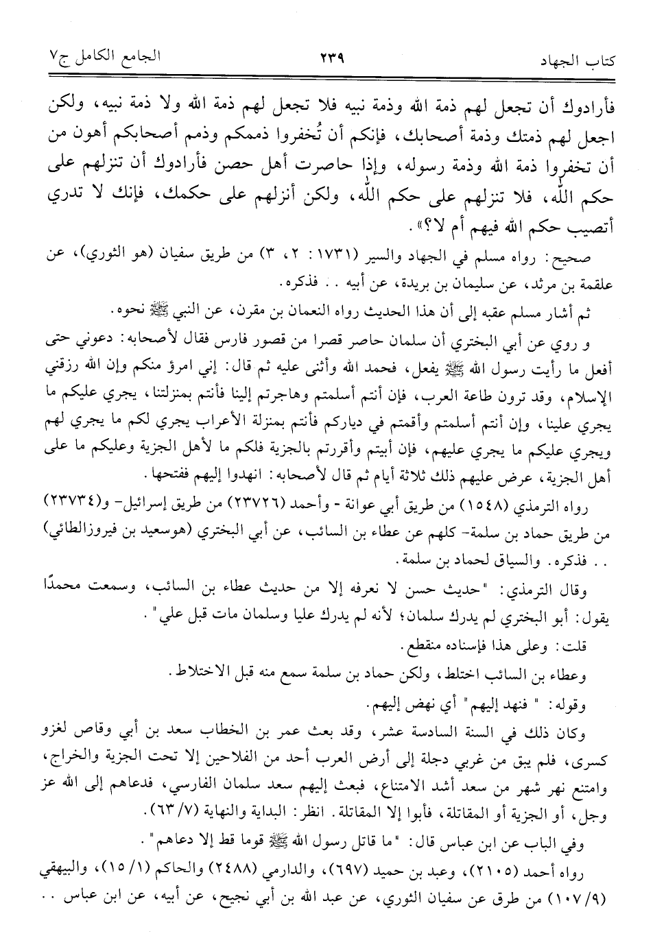 كتاب الجامع الكامل في الحديث الصحيح الشامل المرتب على أبواب الفقه (اسم الجزء: 7)