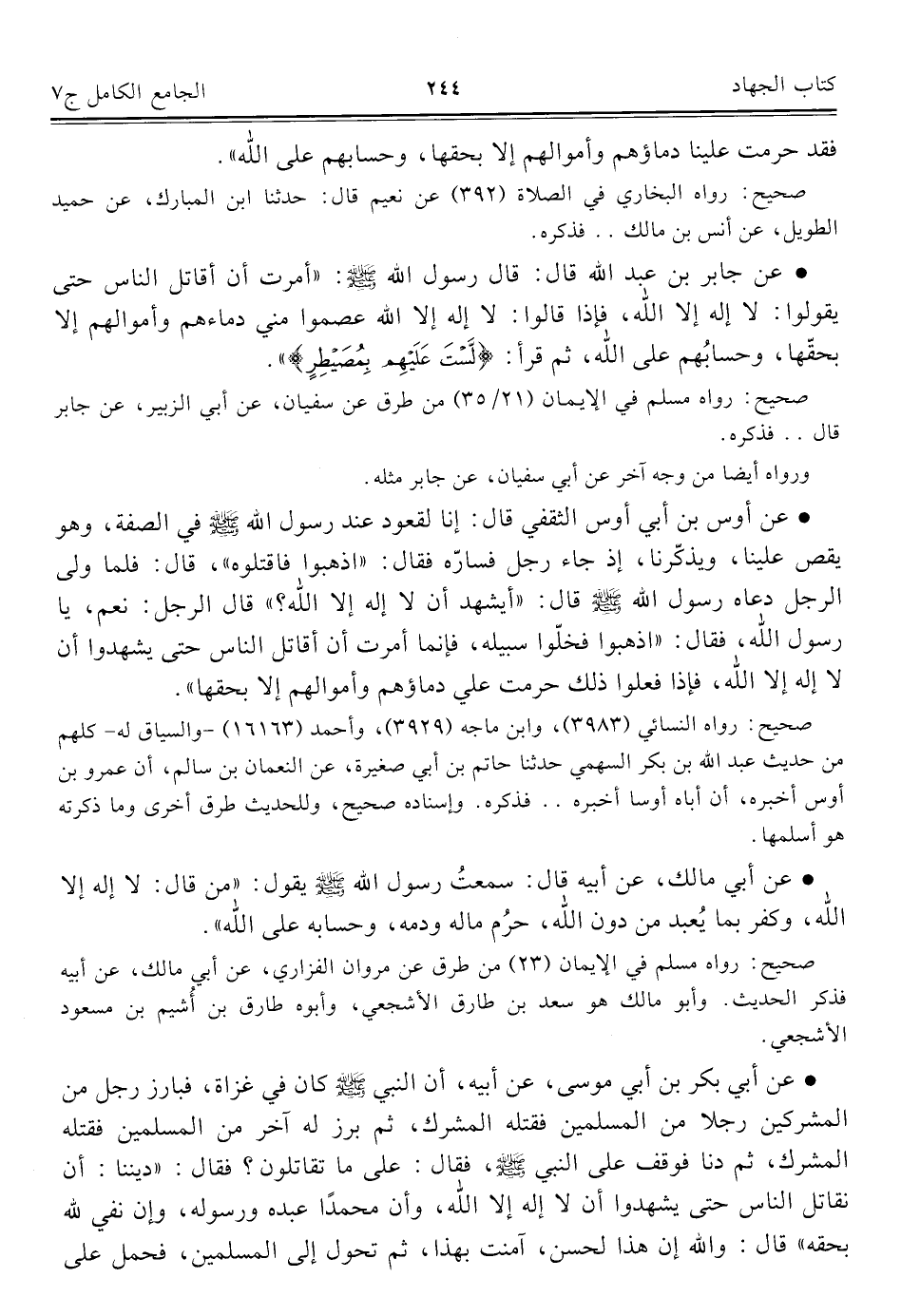 كتاب الجامع الكامل في الحديث الصحيح الشامل المرتب على أبواب الفقه (اسم الجزء: 7)