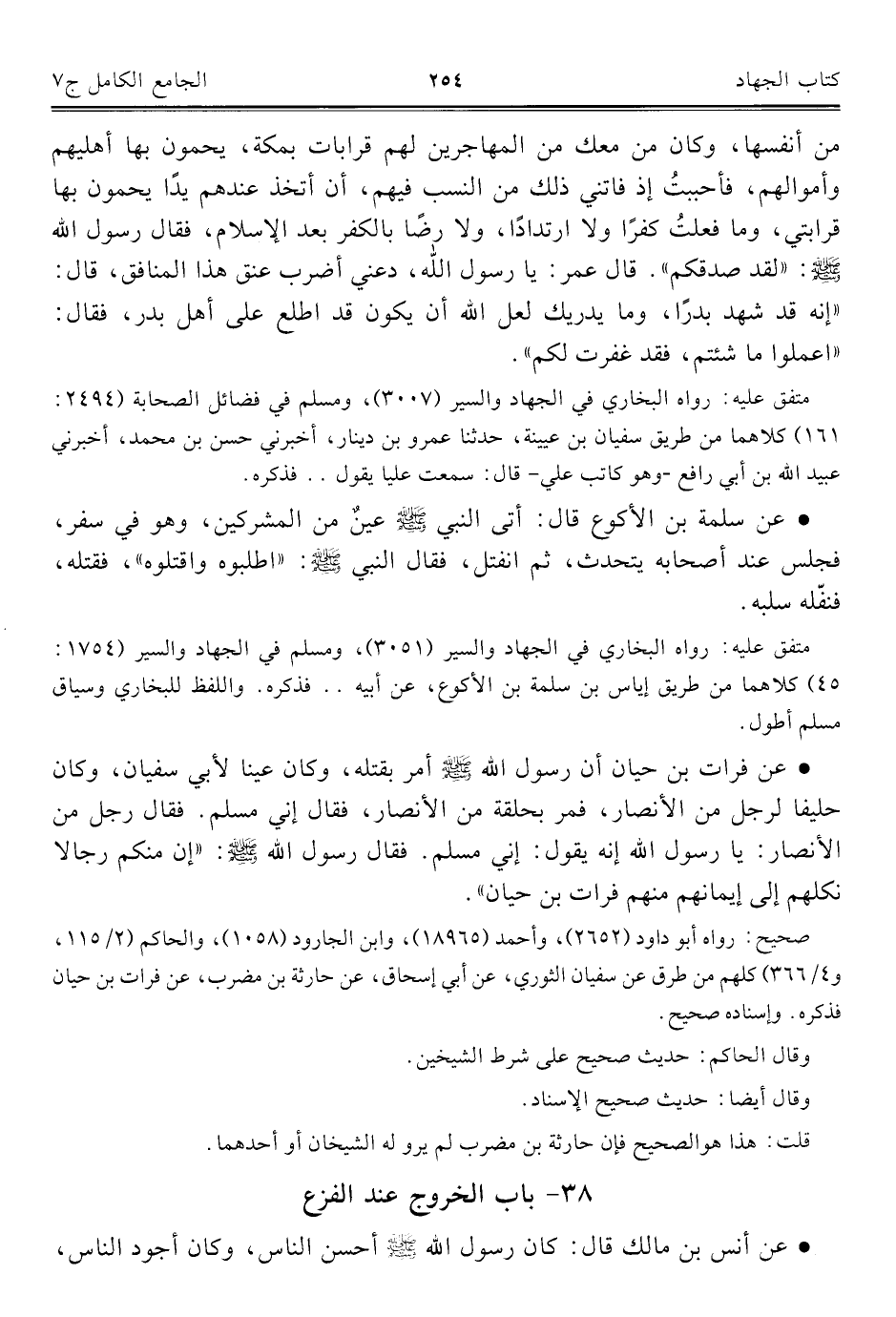 كتاب الجامع الكامل في الحديث الصحيح الشامل المرتب على أبواب الفقه (اسم الجزء: 7)