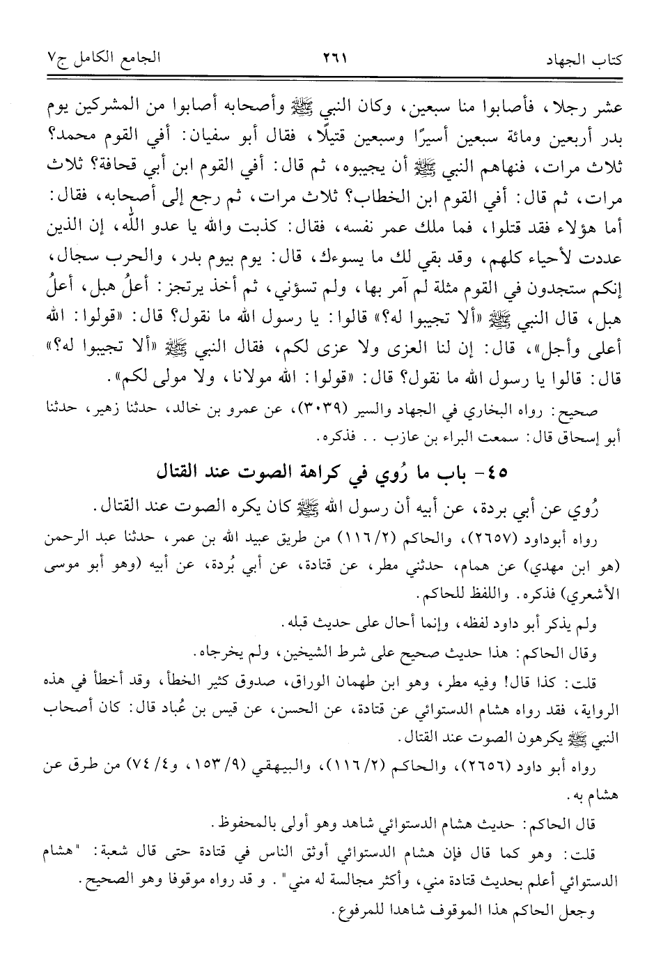 كتاب الجامع الكامل في الحديث الصحيح الشامل المرتب على أبواب الفقه (اسم الجزء: 7)