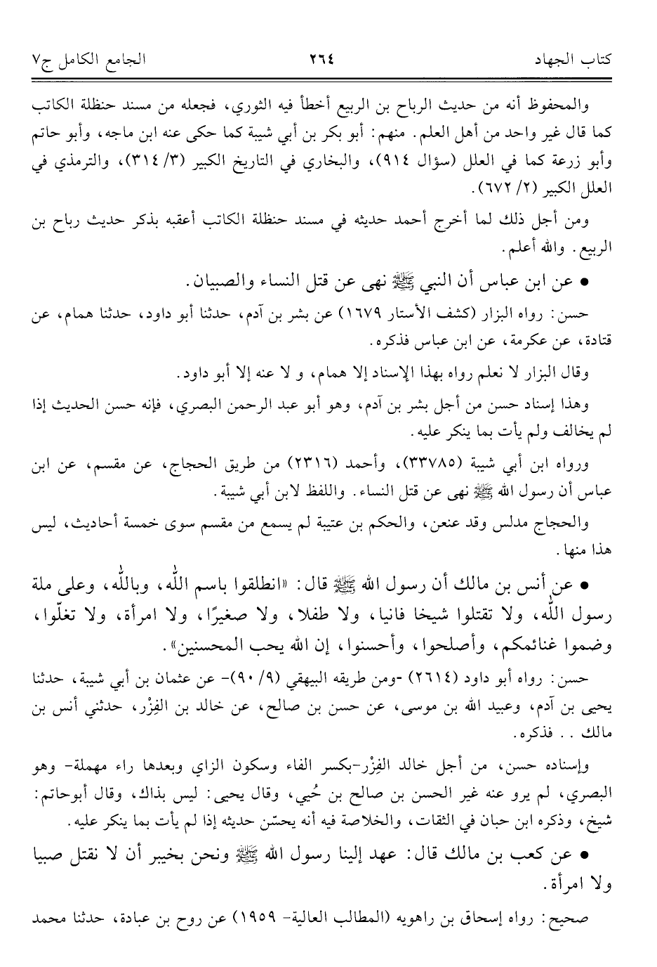 ومن أجل ذلك لما أخرج أحمد حديثه في مسند حنظلة الكاتب أعقبه بذكر حديث رباح بن الربيع. والله أعلم.