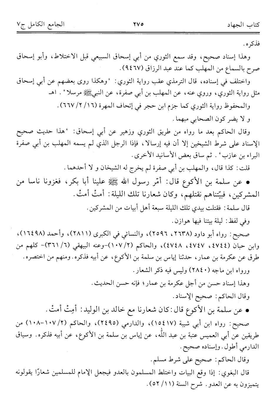 كتاب الجامع الكامل في الحديث الصحيح الشامل المرتب على أبواب الفقه (اسم الجزء: 7)