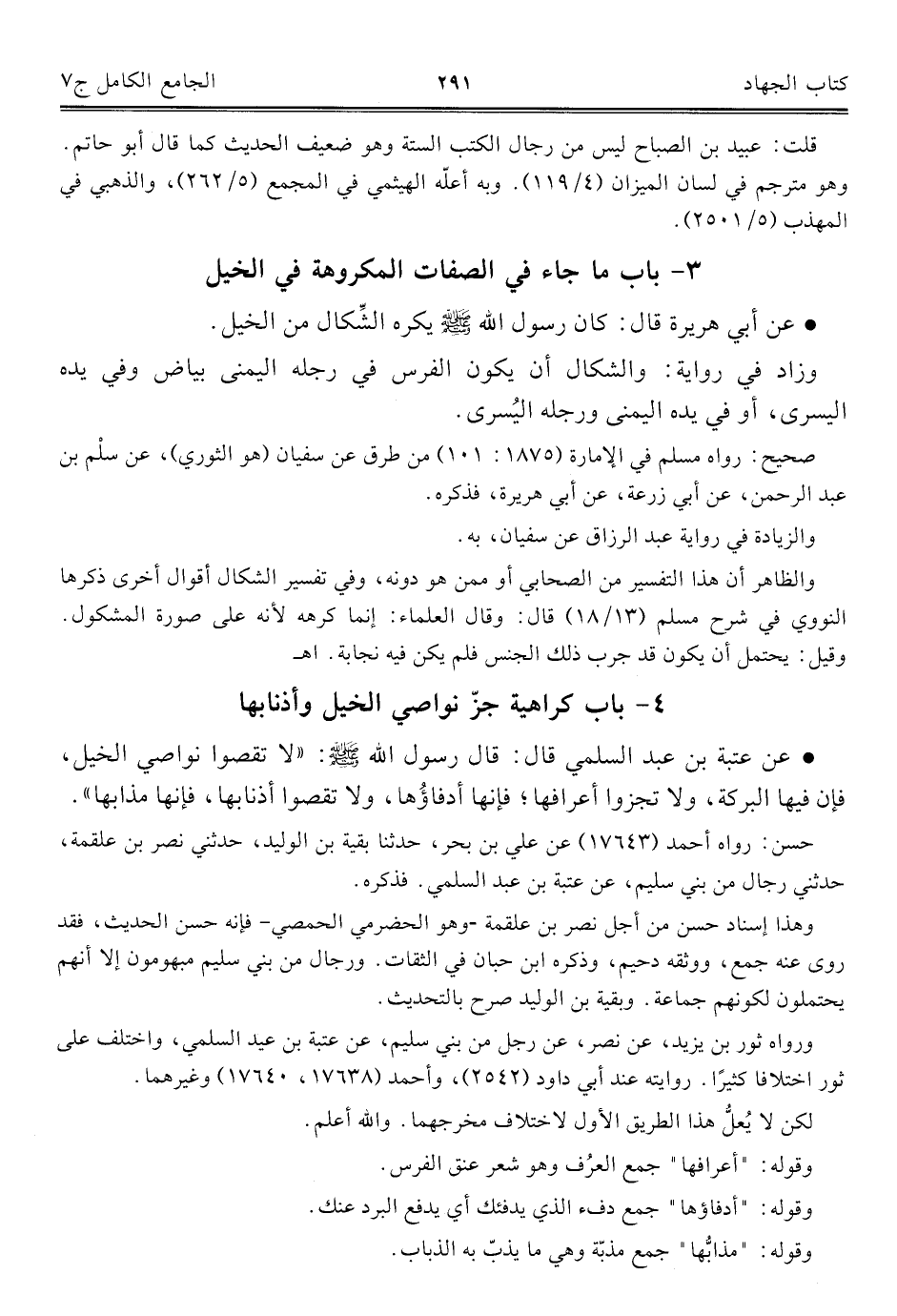 ٣ - باب ما جاء في الصّفات المكروهة في الخيل
