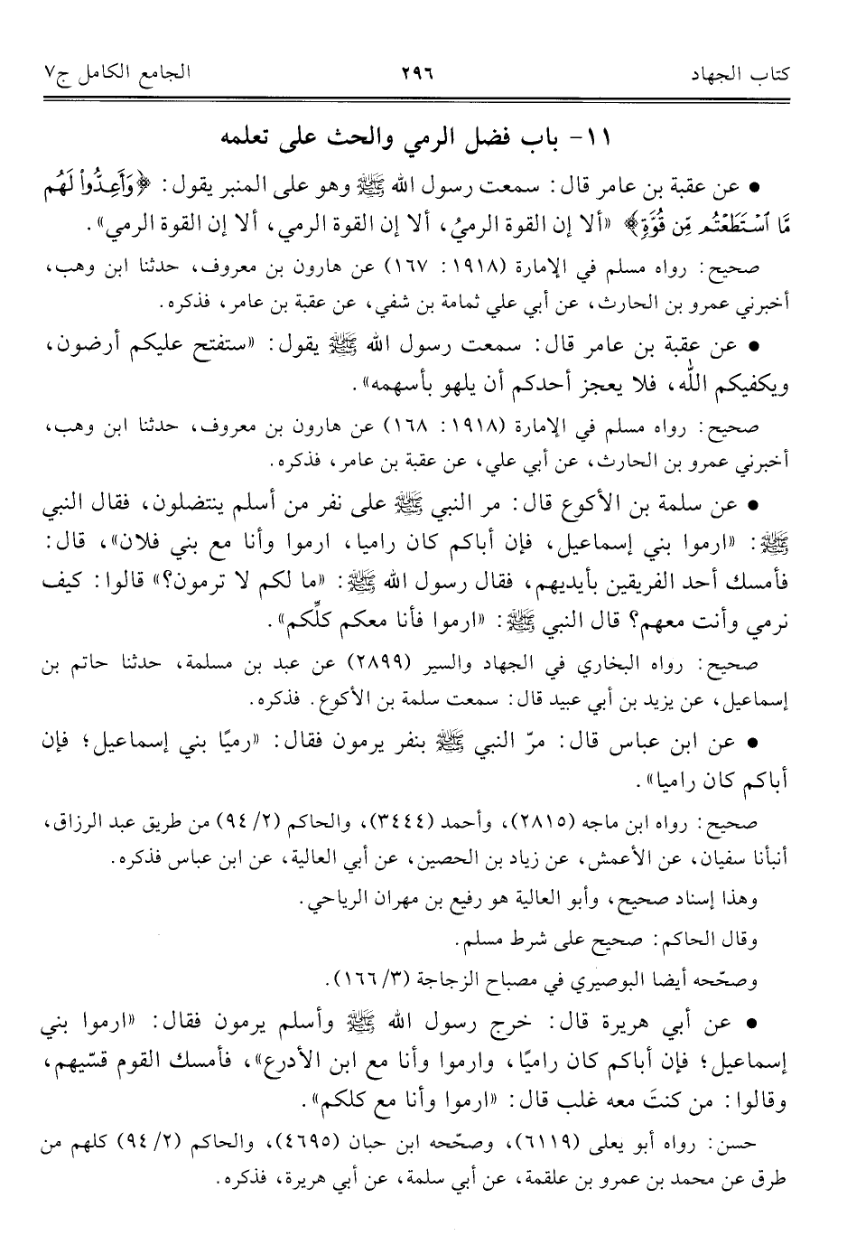 كتاب الجامع الكامل في الحديث الصحيح الشامل المرتب على أبواب الفقه (اسم الجزء: 7)